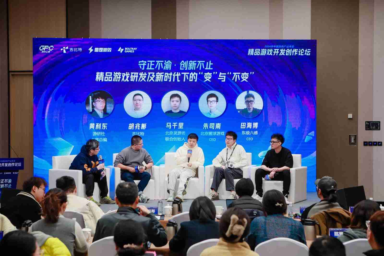 圆桌对话环节,,,在游研社内容总编黄利东的主持下,,一竞技CTO胡兆彬、、、、北京灵游坊联合创始人马千里、、北京猩球游戏CEO朱司南、、东极六感CEO田海博等四位嘉宾围绕“守正不渝、、创新不止——精品游戏研发及新时代下的‘变’与‘不变’”这一主题分享了各自在精品游戏开发理念及工程能力搭建方面的见解和经历,,,,并就行业变化下游戏人需要坚守的理念等展开交流探讨。。。。