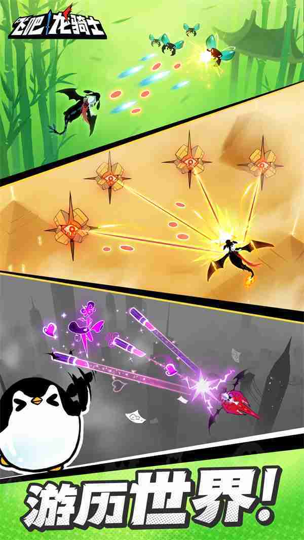《飞吧龙骑士》是一款集合了飞行弹幕射击、、、、Roguelike要素和挂机养成的休闲手游,,,极具创意的吞食子弹反击玩法,,突破传统飞行射击的刻板限制,,,,带来了独特的爽快清屏体验。。