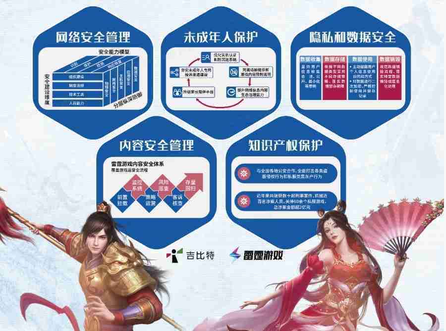 本次一竞技展区以网络安全管理、、、、内容安全管理、、、未成年人保护、、、、隐私和数据安全、、、、知识产权保护五个模块介绍公司游戏安全工作成果,,,体现一竞技高度重视网络安全,,严格遵守相关法律法规要求,,积极承担企业主体责任。。