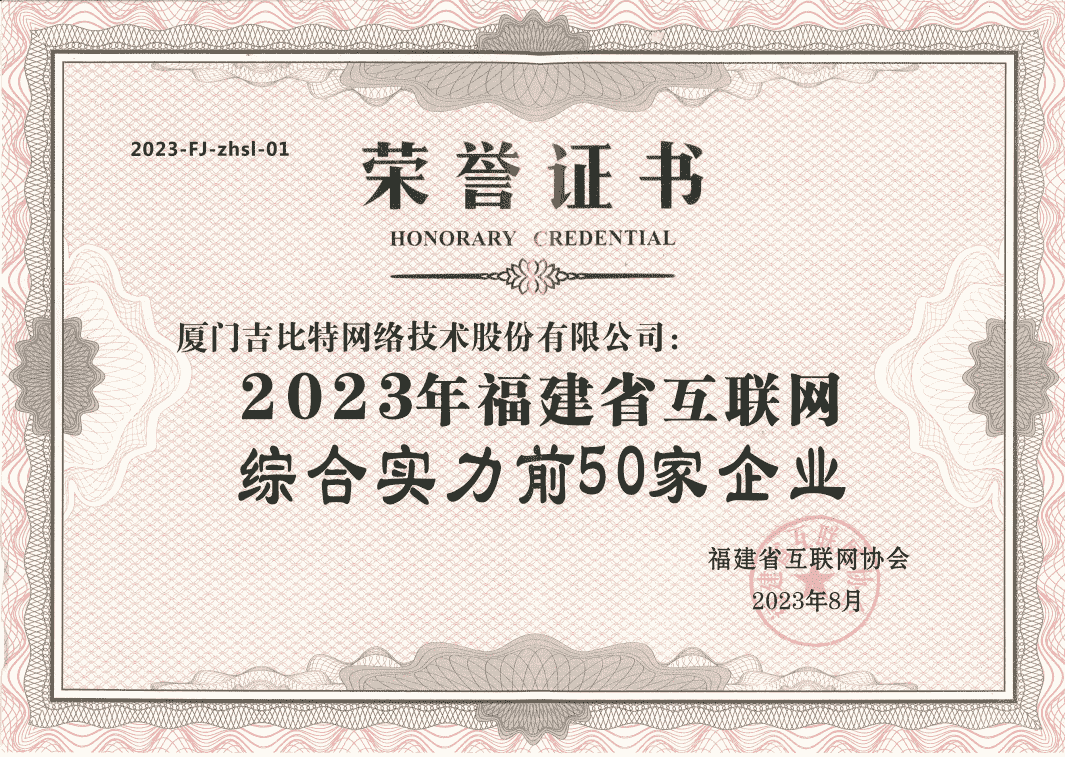 公司新闻 位列第1,,,一竞技获2023福建省互联网综合实力前50家企业