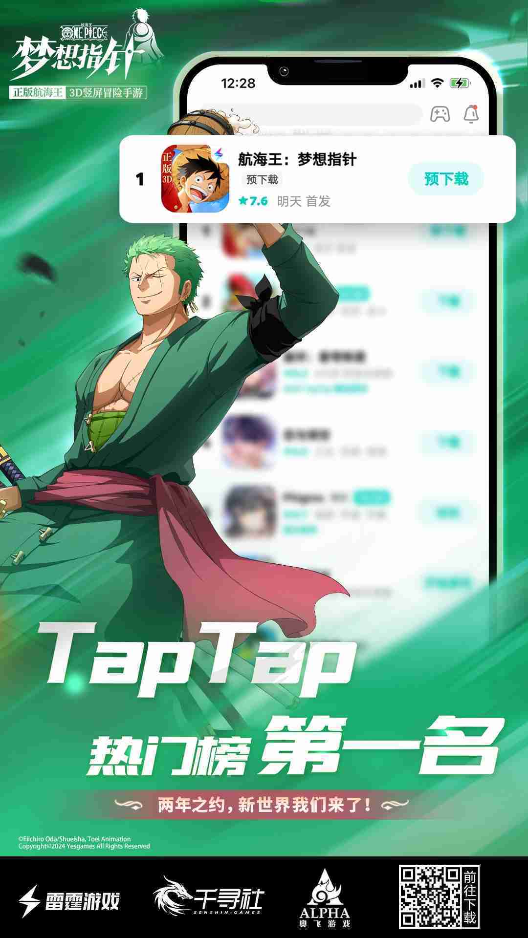 4月1日,,手游《航海王::梦想指针》正式公测,,,,上线仅2小时不到就登上了App Store免费榜Top1,,,与TapTap热门榜第一。。